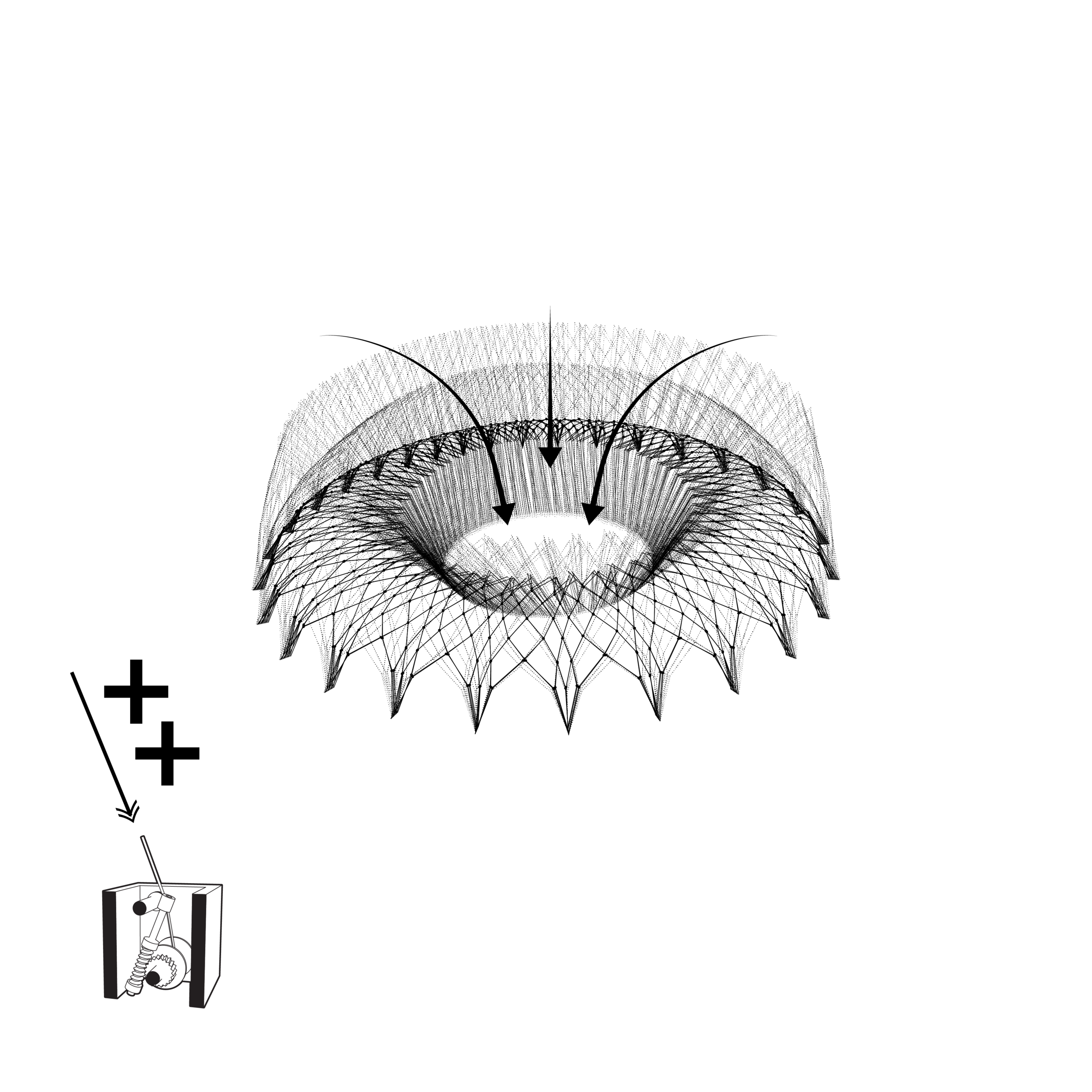 In our initial exploration we decided on a strategy to retain the potential energy of the pole. This was done by the addition of a cable system at one end of the element and a fixed connection at the other. This initial setup enabled us to understand the fundamentals of our system.